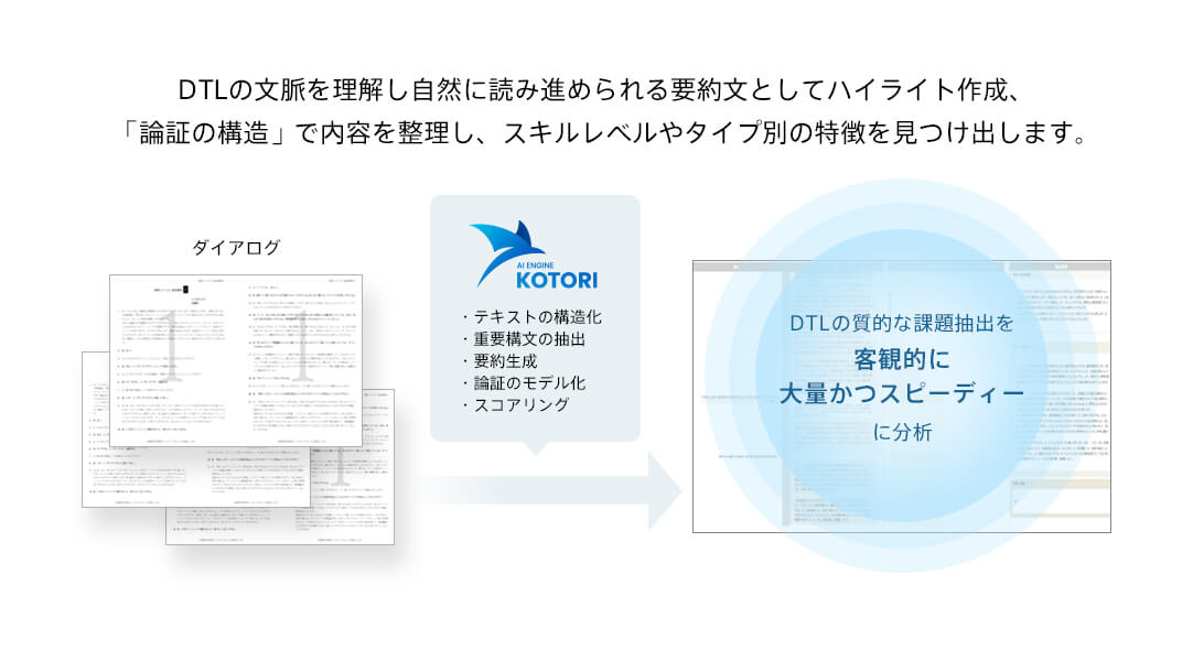 複雑な対話を人工知能技術で整理することにより、人では判断しにくいコミュニケーションの良し悪しや真の課題を導き出し、